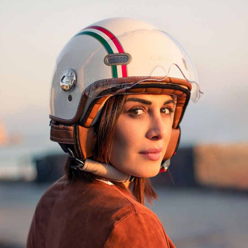 Čelada Demi Jet Cgm 109i Globo Italia Bela/zelena/rdeča - oblikovan vizir M (57-58cm)