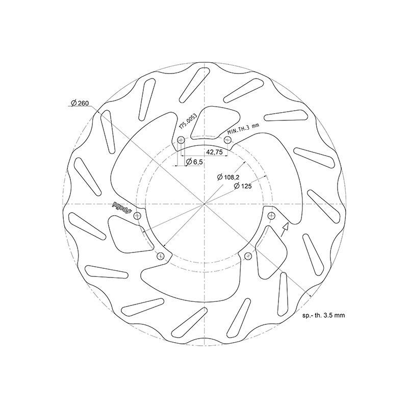 ZAVORNI DISK - POLINI - APRILIA /BULTACO/DERBI/GILERA/HM /RIEJU 50ccm, Ø 260x108,2x3,5 mm, M6 mm 6-lukenj