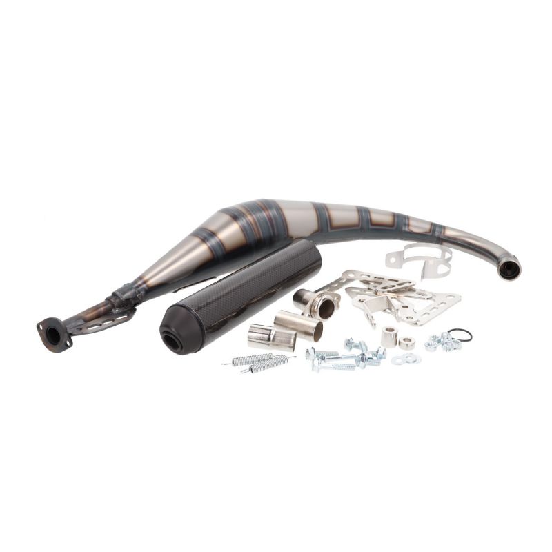 Izpuh je primeren za 50 in 70cc midrace predelave - dobro deluje v kombinaciji s cilindri kot je Airsal T6. Dušilec je narejen iz karbona.Prejemniki :